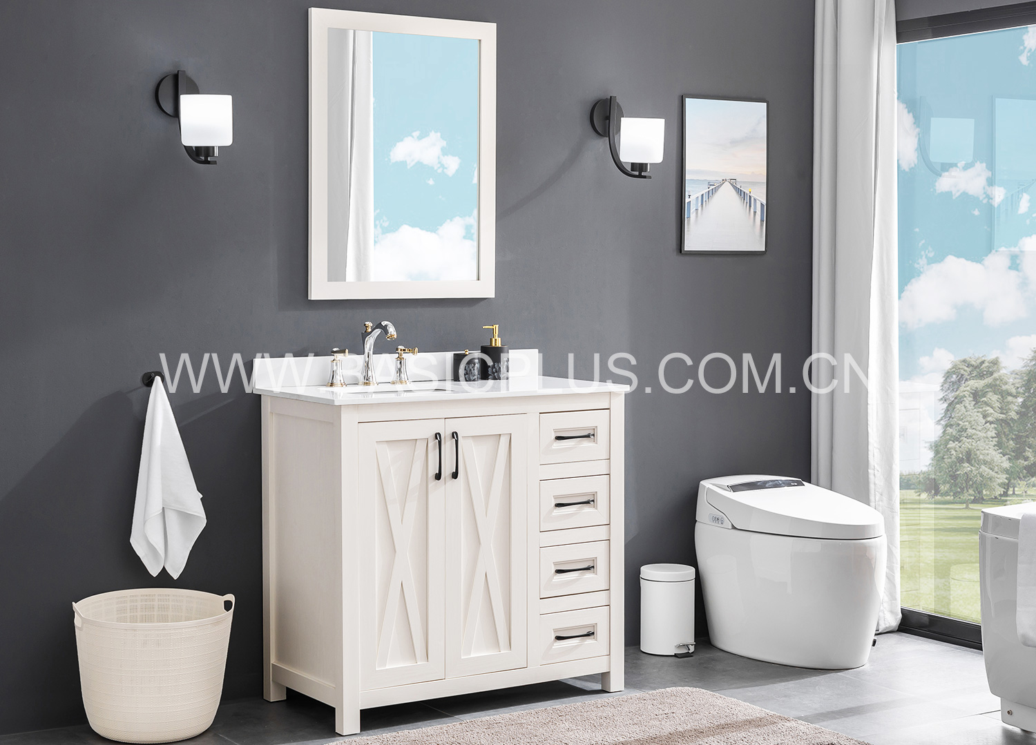 Enteral-35 Enteral-35" Mirror: -- mm Enteral-36" Basin: 914*483*15 mm Enteral-35" Cabinet: 889*470*849 mm Color: customizable |